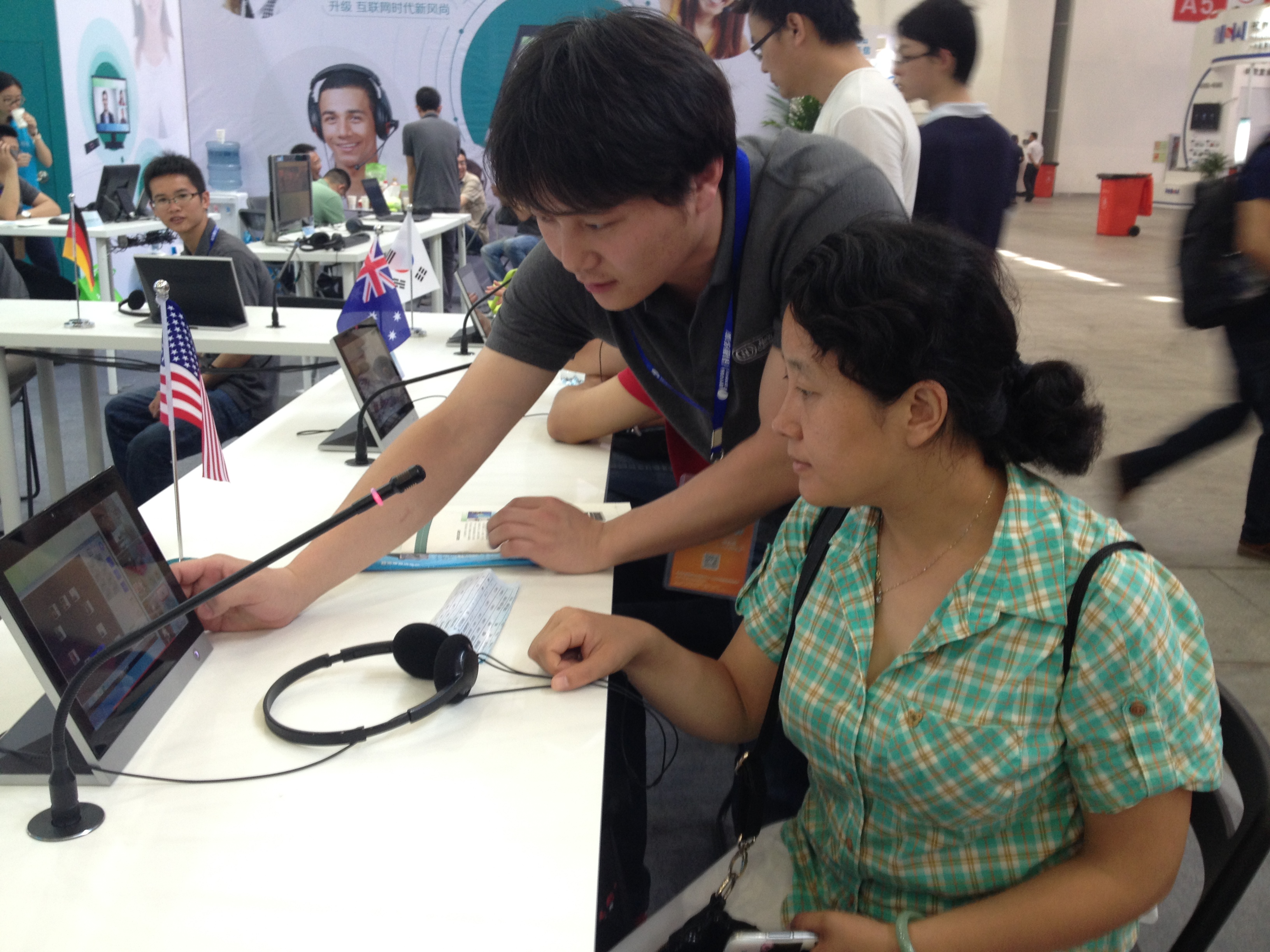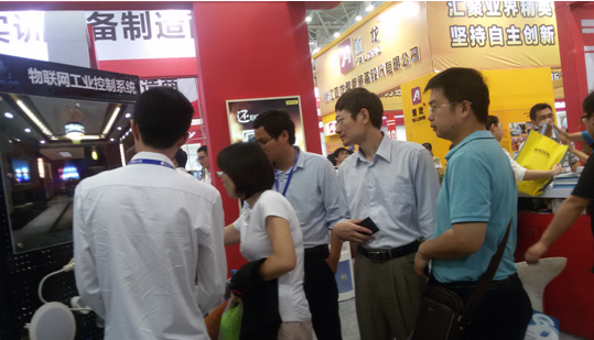 展会上,参展的企业很多,各位系主任,认真地观摩学习每一家参展企业,积极和参会企业的代表进行沟通,了解新的教学实验室设备。