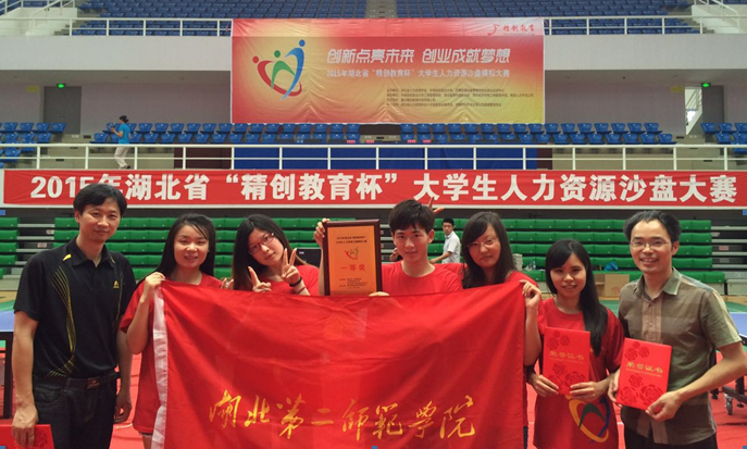 2015年5月16-17日,2015年湖北省“精创教育杯”大学生人力资源沙盘大赛在中南财经政法大学文化艺术中心举行。我院公共事业管理专业的陈磊、夏冬、赵芬芳、丁蔼丽、钟民娟、岑娟等六名同学在指导老师王忠诚、熊丁带领下参加了此次比赛,并获得一等奖。