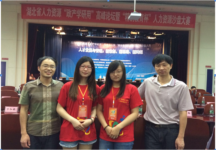 (通讯员:熊丁)2015年5月16-17日,在中南财经政法大学文化艺术中心举行了2015年湖北省“精创教育杯”大学生人力资源沙盘大赛。我院公共事业管理专业的陈磊、夏冬、赵芬芳、丁蔼丽、钟民娟、岑娟等六名同学在指导老师王忠诚、熊丁带领下参加了此次比赛,并获得一等奖。