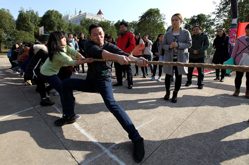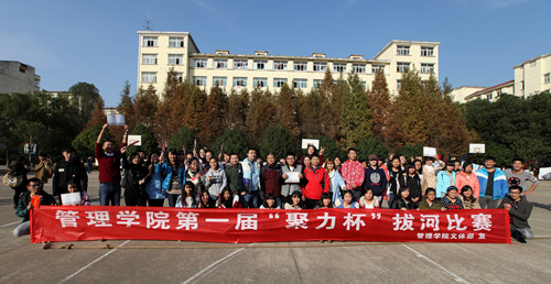 本网讯(企宣部见习记者 龚梅丹 吴秋阳)11月26日下午13时30分,管理学院第一届“聚力杯”拔河比赛在我校东区篮球场举行。