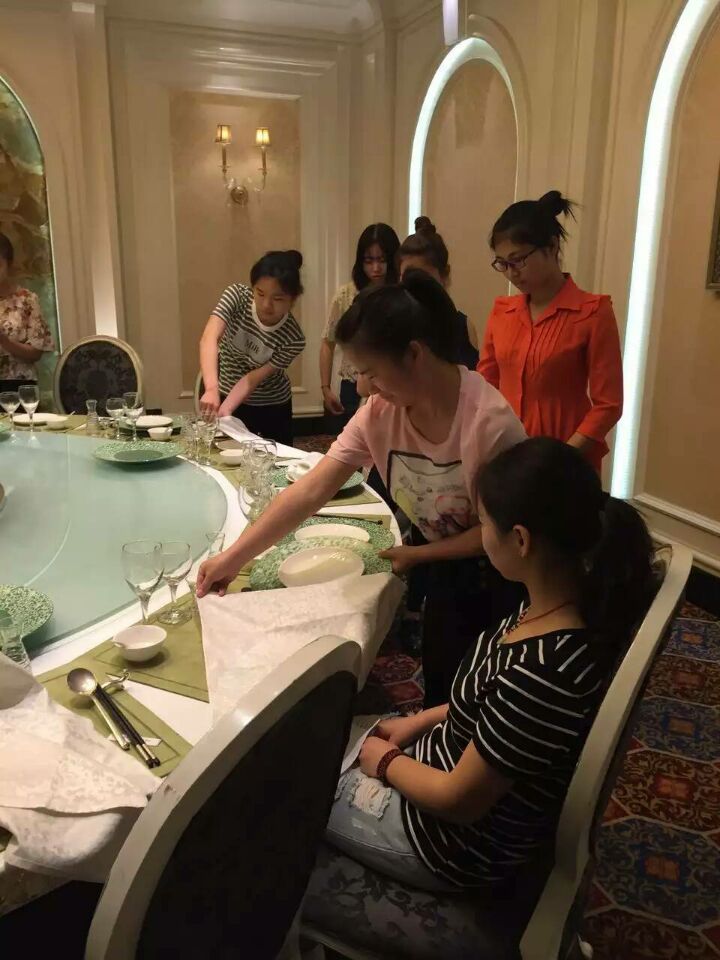中餐厅的学习,也以讲授和实操为主。从最简单的站姿礼仪到迎客问客;从餐巾折花到餐位摆台;从拉椅让座到起身送客;从点餐推荐到上菜巡台;经理讲解面面俱到。之后还开展了一个有奖相赠的小活动,同学们都热情踊跃参加,有的同学获奖而归,满是欢喜。