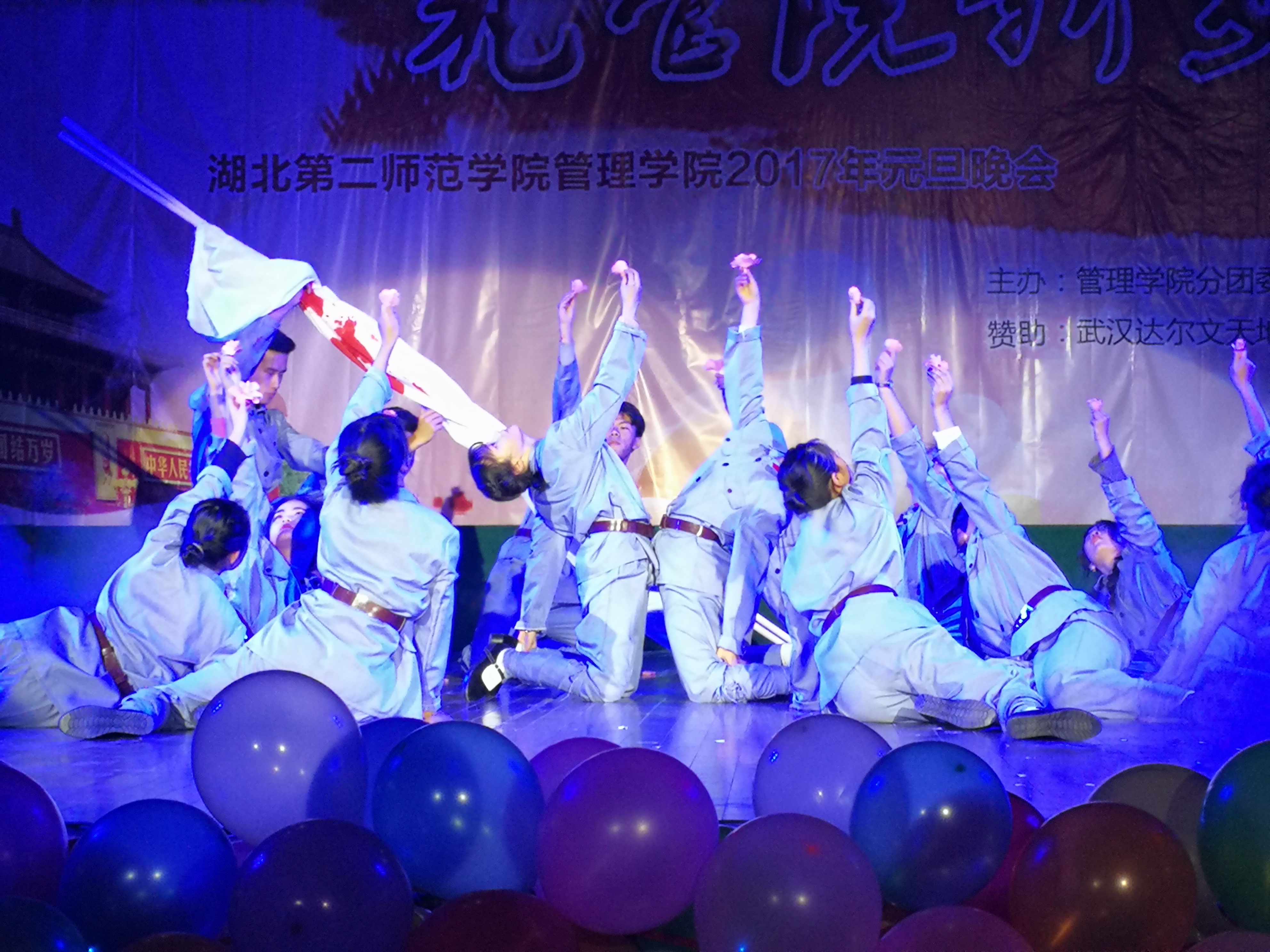 据悉,此次“传红色基因,筑管院新梦”元旦晚会是由管理学院分团委学生会承办。晚会开始,传奇流行音乐社带来了开场曲《真的爱你》让现场气氛顿时升温.一段民族舞《无名花》,以独特的舞蹈演绎了12名女战士英勇抗战,绝不屈服,最后壮烈牺牲的故事,将晚会推向高潮。