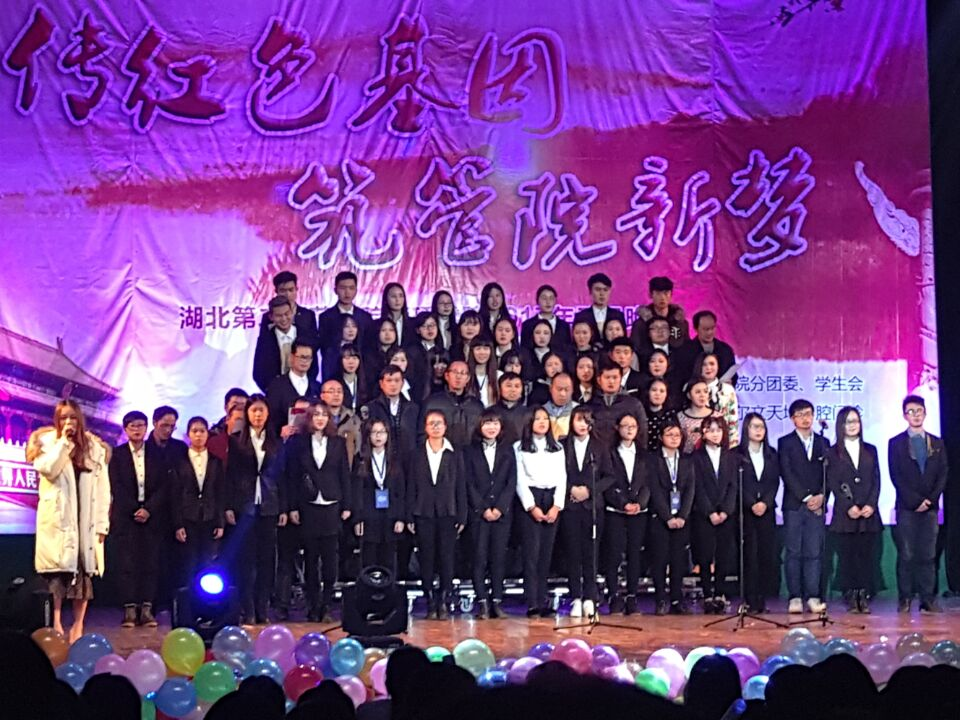 营销教研室曾春中老师参演京剧《说唱脸谱》,副院长汤中明与管理学博士蔡璐亲身参与物流大合唱《和你一样》,辅导员杨兰芳、施晴、吴文娟与我院学子同台演出民族舞《咏春》,全体院领导、到场老师一起合唱《没有共产党就没有新中国》,尽显老师与学生的共庆同乐,是本次晚会的另一个亮点。