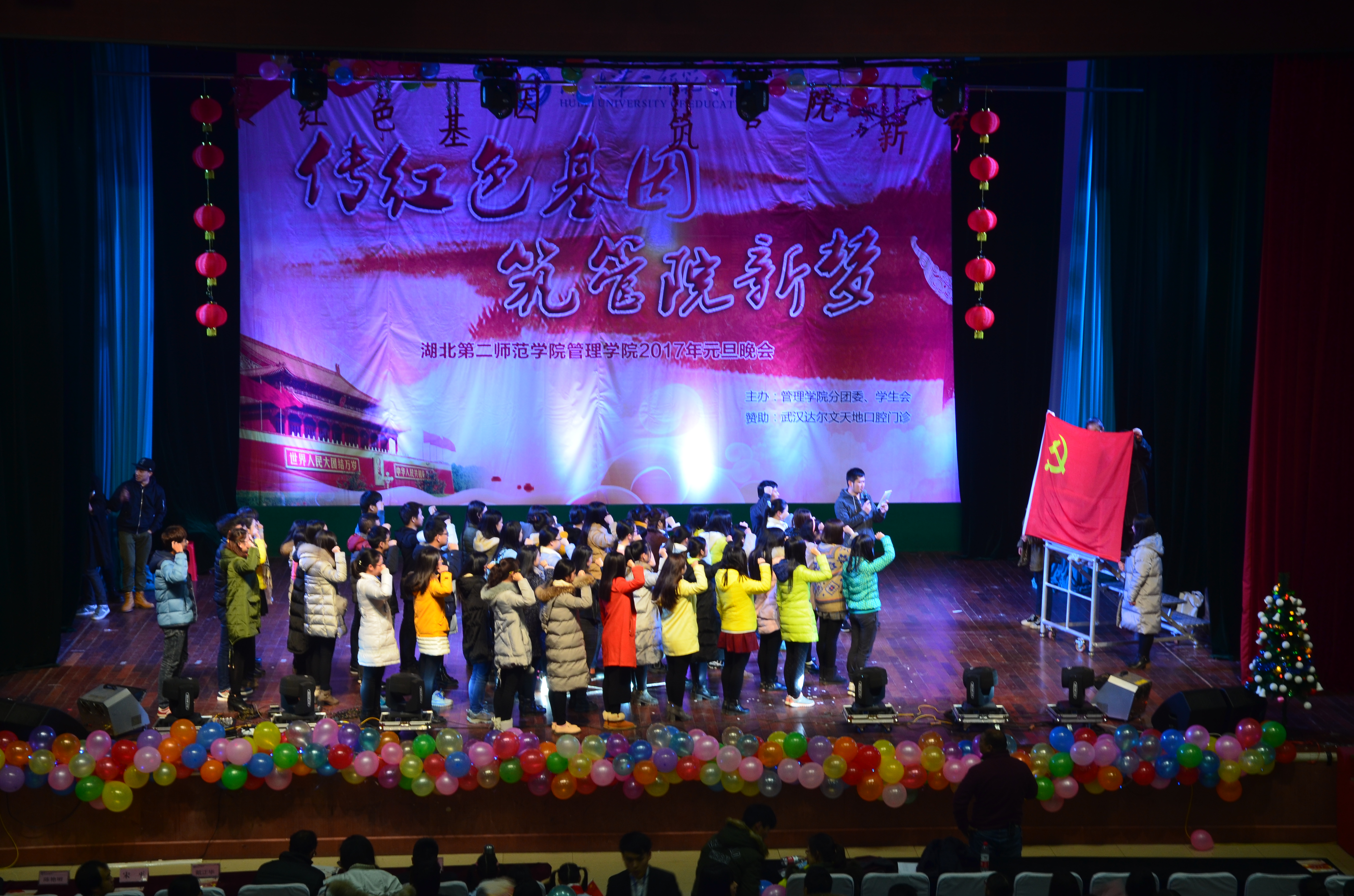 全院学生和部分教师代表观摩了新党员宣誓仪式。本次宣誓仪式选择在学院2017年元旦晚会举行之际,既是新党员亮身份、允承诺、受监督的方式,也是对全院师生进行了一次党的知识宣传和政治教育。宣誓仪式与本次本次晚会的主题——“传红色基因,筑管院新梦”相得益彰。