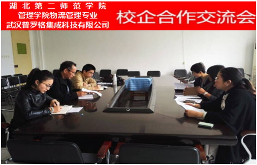 2017年03月28日下午2点半,管理学院与武汉普罗格集成科技有限公司召开校企合作交流会。普罗格副总经理卢阳、普罗格学院杨婧、人力资源经理胡海燕,管理学院院长夏仕平、副院长汤中明及物流管理专业教研室主任周玲、专业负责人蔡璐共同出席了本次交流会。