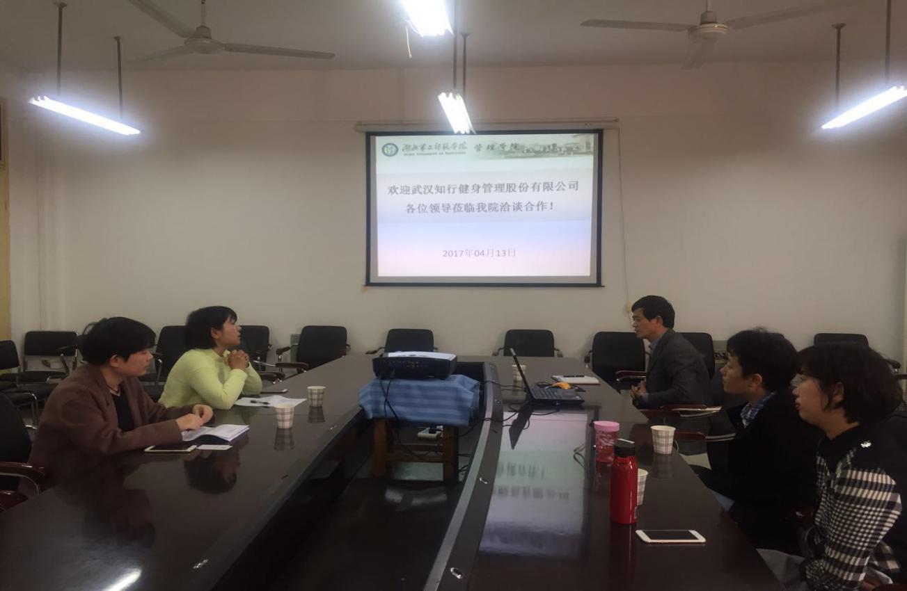 2017年4月13日下午,武汉知行健身股份管理有限公司总经理刘甜甜和人力资源总监杨芳来我院调研市场营销专业就业现况,就校企合作、开展订单班人才培养项目事宜进行了深入商谈。管理学院副院长王诗龙、市场营销专业负责人栾晓梅博士、教研室主任张帆及专业教师刘爱君博士参加了座谈会。座谈会由王诗龙副院长主持。
