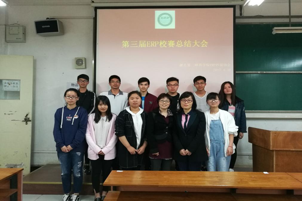 (通讯员:陈琪)2017年4月20日中午1点,ERP沙盘协会在二号教学楼召开了第三届ERP沙盘模拟经营大赛总结表彰大会,ERP沙盘协会各部门代表参与了此次大会,同时管理学院副院长汤中明院长,物流教研室的周玲主任及曹玉娇老师亲临现场,为学生指导工作。ERP协会会长张锋主持此次大会。