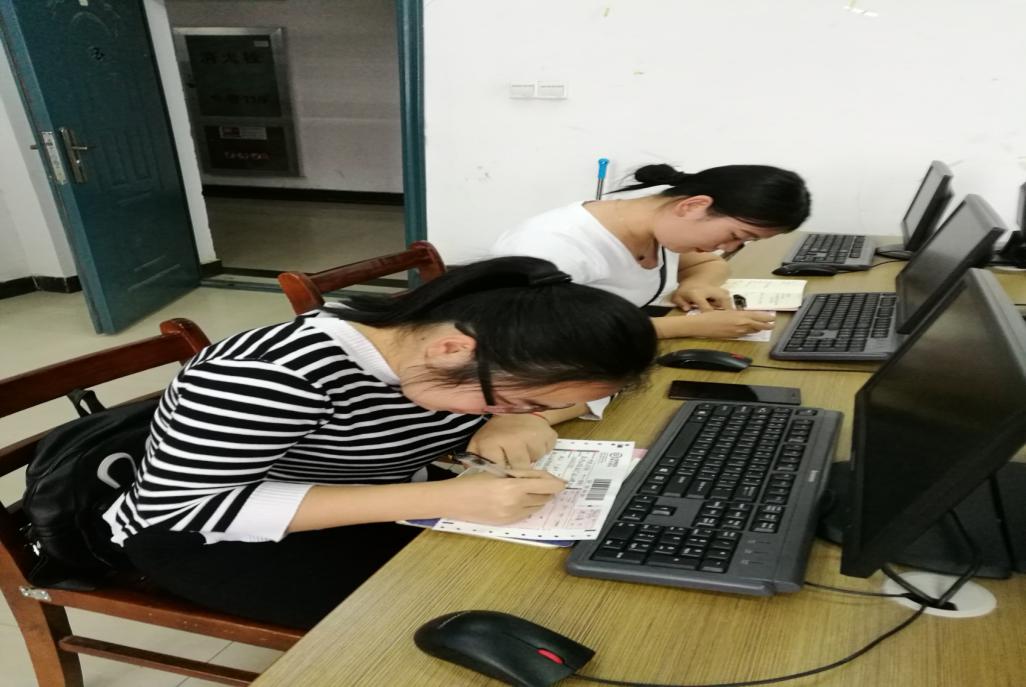 顺丰订单班同学在认真填写运单
