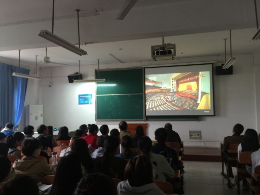 上午9时,管理学院党总支书记戴正华、副书记宋平、全体党员教师、学生党员代表欢聚一堂,认真收看十九大开幕会电视直播。大家心怀喜悦,认真聆听习近平同志代表第十八届中央委员会向大会所作的报告。