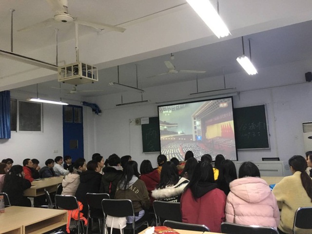 3月5日上午,师生一起收看全国人大十三届二次会议开幕式