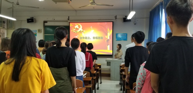 开班仪式在庄严的国歌声中拉开序幕,全体起立奏唱国歌。