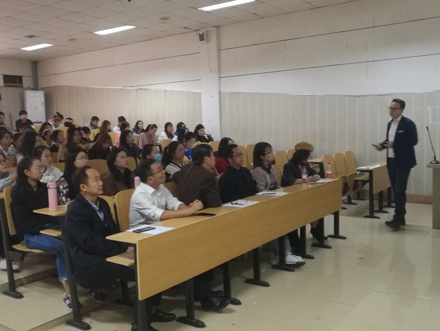 本网讯(企宣部见习记者 张睿思)11月7日下午2点,第154期“光谷论坛”在我校阶梯教室1开讲,本次活动由管理学院主办,旅游与酒店管理系承办。来自多伦多大学管理与创新学院国际高管培训主任谢爱军博士受邀开展“国际化人才自我修炼手册——基本素养与职业规划”主题讲座。论坛由管理学院旅游与酒店管理系主任马达主持。