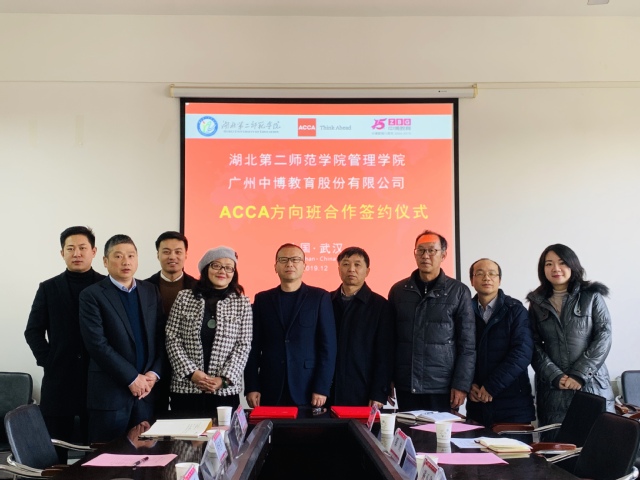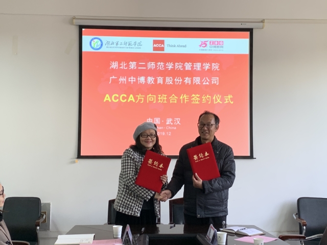 (通讯员:管新)12月12日上午,在我校2号教学楼管理学院会议室,举行了该院与广州中博教育股份有限公司校企合作办学签约仪式。双方就开办财务管理专业(ACCA方向)定向班达成一致意向,并就下一步具体合作安排进行了磋商。党委常委、副校长夏力亲切会见ACCA武汉教育拓展经理郭姝和中博教育企业方领导并出席签约仪式。管理学院院长夏仕平(教授)主持会议。