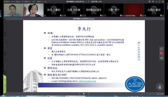 本次培训研讨会由Blackboard中国教育研究院副院长张丹博士主持,AACSB国际资深认证专家,台湾辅仁大学副校长李天行教授为主讲嘉宾,来自北京外国语大学、中南财经大学及西南财经大学等来自国内22所大学经管类学院的领导和老师,共计90人齐聚云端,共同研讨商学院国际认证工作。