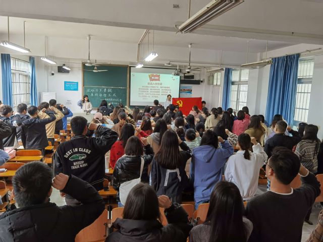 本讯网(见习记者 邓思婕)2021年3月16日12时30分,管理学院学生党支部在1104教室开展“学讲话、强担当、见行动”主题党日活动,活动由19级市场营销1班张梦倩主持。