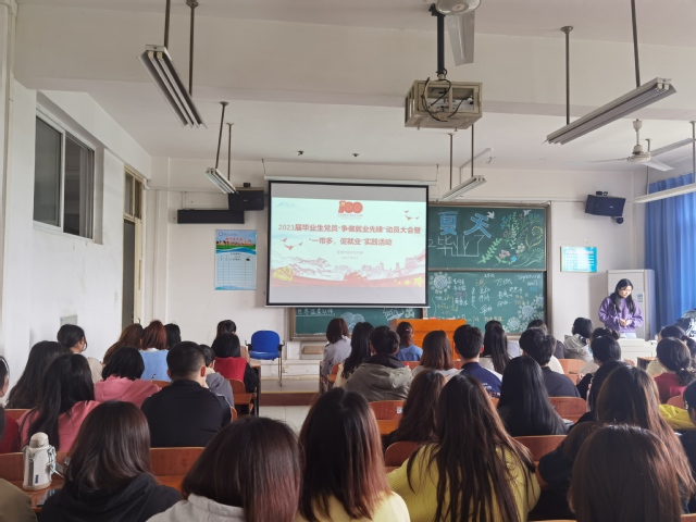 本网讯(通讯员 邓思婕 何雯洁)为促进管理学院2021届毕业生就业,学院学生党支部于4月25日中午在教室2305召开2021届毕业生党员“争做就业先锋”动员大会暨“一带多,促就业”实践活动。本次活动由管理学院就业干事兼学生第二党支部组织委员叶莹主持。