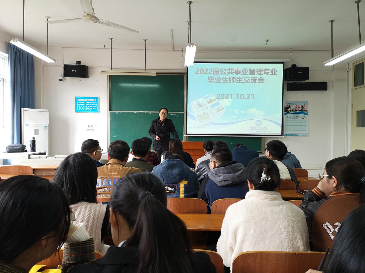 2021年10月21下午,公共事业管理系召集2022届毕业生和全系教师,在二号教学楼2306教室召开师生交流会,会议由系主任熊丁主持。