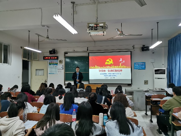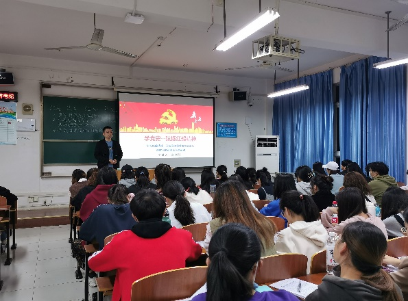 本网讯(通讯员 肖晨阳)秀水泱泱,红船依旧;时代变迁,精神永恒。11月1日晚18:30,管理学院学生第二党支部书记席中刚在二号教学楼2414教室为第23期发展对象培训班学员授课。据悉,本次党课以“学习红船精神,在建设中国特色社会主义新时代的道路上奋勇前进”为主题。