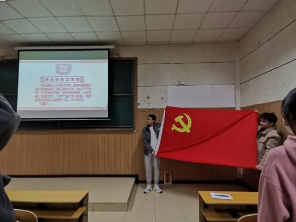学生党员诵读党章第三十九条至第四十四条,时刻将党的纪律牢记于心。