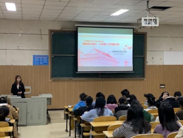 本网讯(通讯员 黄蔓茜)2021年11月25日13时50分,管理学院学生党支部在阶梯教室5召开了巡视专题党日活动。本次活动以“保密”为主题。此次活动由学生党支部党群服务部蒋奇同学主持,管理学院全体学生党员参与此次主题党日活动。