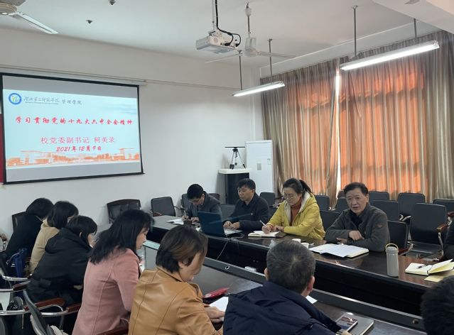 (通讯员:李婷)12月9日下午,管理学院组织党员干部学习党的十九届六中全会精神。校党委副书记柯美录出席并做了《学习<决议>中建党百年十大历史经验》的学习辅导报告。学院班子成员、教师第一支部、行政支部全体党员参加了本次活动。管理学院党委书记戴正华主持会议。