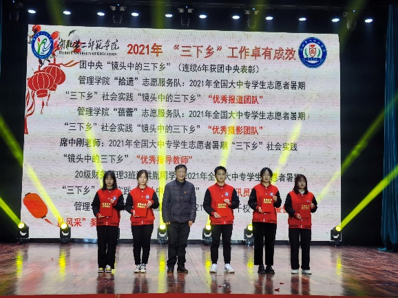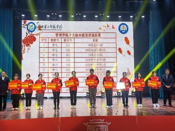 在晚会期间,校党委副书记柯美录对我院近年来取得的优异成绩表示了肯定,并为我院“三下乡”获奖团队进行了颁奖。学工部部长金殿中、财务处处长王诗龙为我院文明寝室创建成果“十大标兵寝室”代表颁奖。