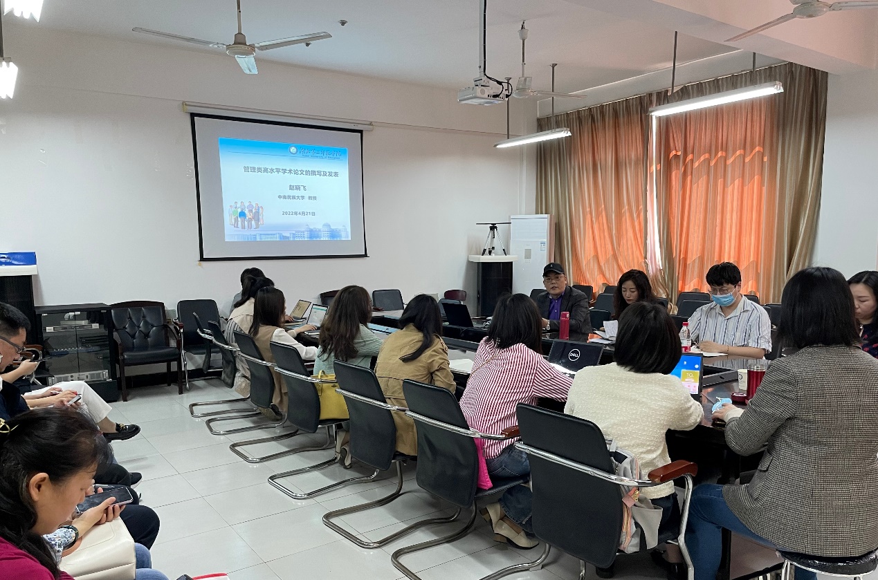 2022年4月21日下午,管理学院学术论坛如期举行。我校特聘教授,中南民族大学管理学院赵晓飞教授以“管理类高水平学术论文的撰写与发表”为题,与全院博士教师一起学习和探讨了高水平期刊论文写作与发表方面的热点问题。讲座由管理学院副院长蔡璐副教授主持。