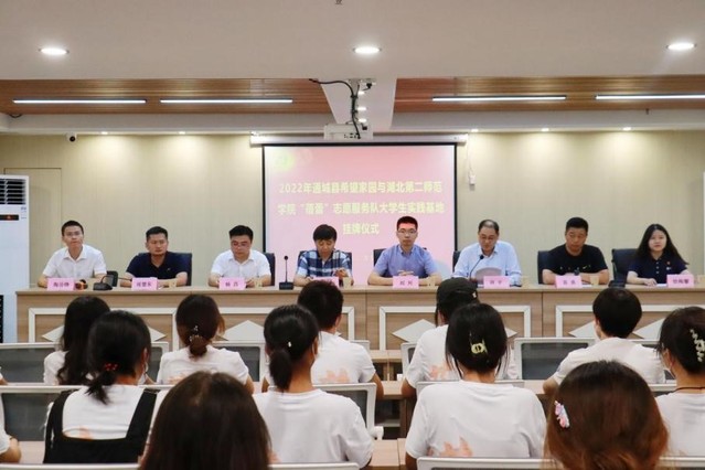 (通讯员:管新、徐梅馨)7月29日上午,英国威廉公司管理学院2022年赴通城县暑期“三下乡”志愿服务活动总结汇报会暨大学生社会实践基地挂牌仪式在通城县人才家园会议室举行。通城县委常委、组织部长杨昌出席活动并讲话,通城县政府副县长刘长青会见管理学院党委书记戴正华一行。通城县政府副县长唐平主持会议及挂牌仪式。