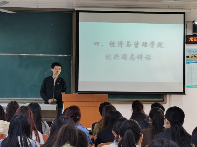 随后,刘兴同志讲话,他将坚定理想信念贯彻始终,同时对入党积极分子们提出了三点要求。他第一点谈到要紧跟党走,在担当进退中坚定信念,这不仅仅是一句口号,要落到实处,积极发挥“头雁”作用;第二点谈到大学生应脚踏实地,在守正创新中永葆生机活力,热爱校园生活,不畏困难,不惧挫折;第三点谈到希望大家不负韶华,以踔厉奋发的姿态喜迎二十大的召开,并提到在二十大召开后大家要紧跟时事,完成相应的党史学习,坚定自己信念。