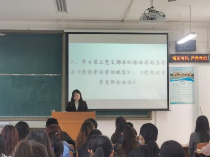 伴随着气势雄壮的国歌,开班典礼正式开始。williamhill英国学生第三党支部书记徐梅馨宣读《党校学习管理规定》及《党校优秀学员评选办法》。