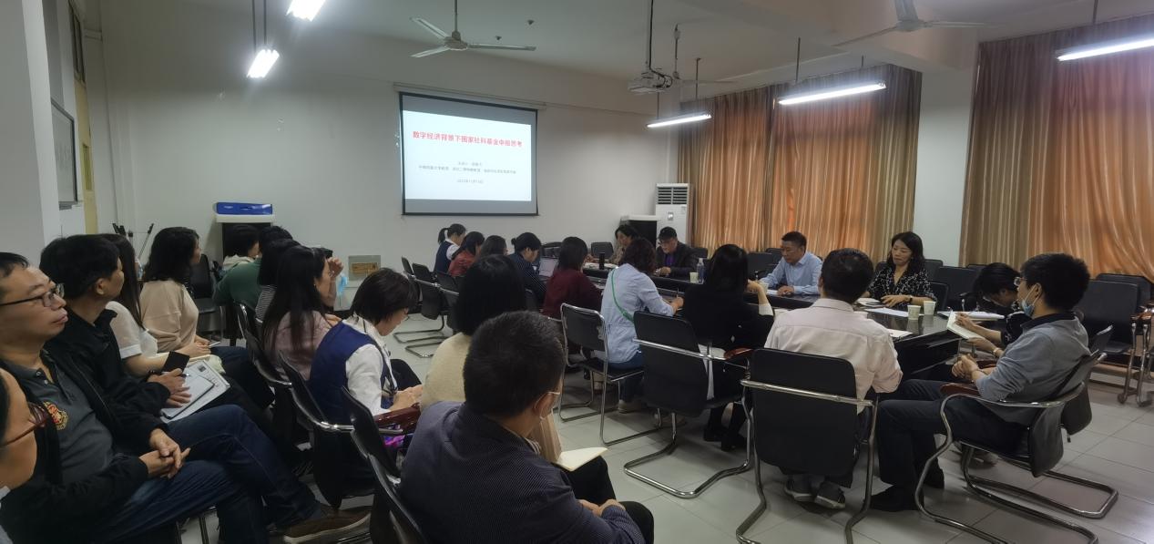 在“数字经济背景下国家社科基金申报思考”主题报告中,我校特聘教授赵晓飞从二十大关于数字经济的表述、申报者如何选题(选题方法)、需要注意的问题及前期案例等方面提出了具体可行的建议和意见,并针对学院栾晓梅等7位老师的国家社科预申报材料进行了一对一指导,提出了针对性修改意见。