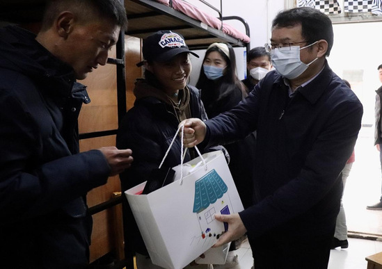 最后,郑军校长为藏族学生送上了学习生活用品和藏历新年祝福,5位藏族同学也为领导老师献上了“哈达”表达敬意和祝福。