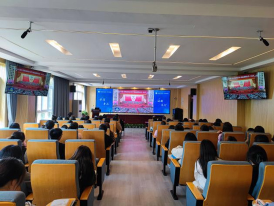 图为学院党委组织各支部师生代表学习现场