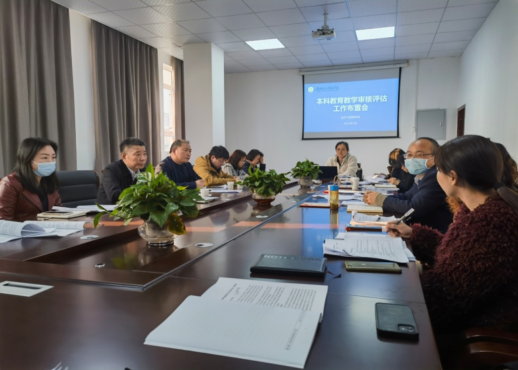 陈艳明副院长向与会人员传达了3月28日由学校教学质量监测与评估中心主持召开的本科教育教学审核评估工作会议的相关精神。根据会议要求对学院自评自建工作做了预案部署,并对本次审核评估指标体系进行了解释说明。