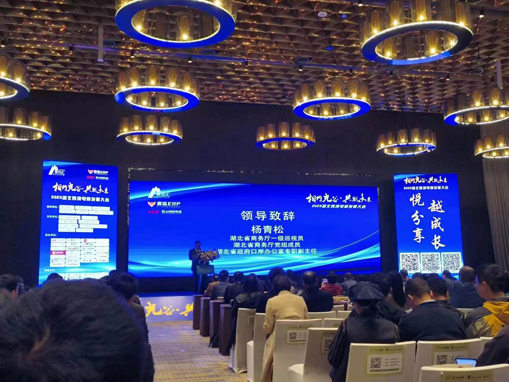 湖北省商务厅一级巡视员、湖北省商务厅党组成员、湖北省政府口岸办公室专职副主任杨青松莅临大会并做重要讲话。杨青松强调,近年来,湖北致力于将跨境电商产业打造成外贸发展的新引擎新动能,下一步,我省将持续加强支持和服务力度,构建数字化跨境电商生态圈和科学的供应链物流体系,不断优化营商环境,聚力推进跨境电商产业发展。