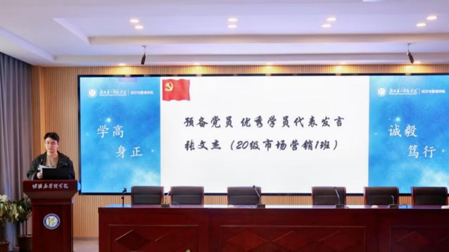 (预备党员培训班优秀学员代表张文杰发言)