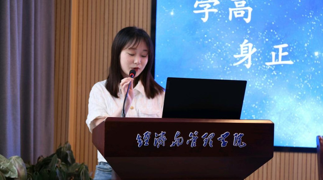 图为发展对象培训班优秀学代表崔羽翕发言)