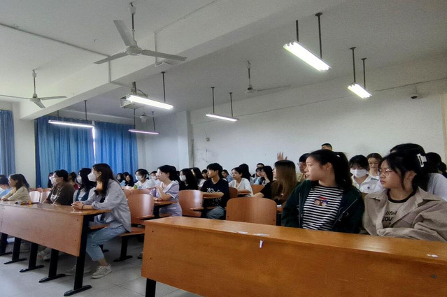 图为经济与管理学院学生第二党支部发展对象进行汇报)