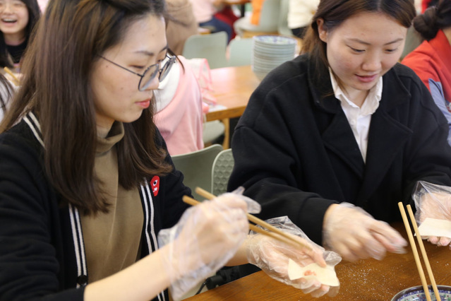 在对传统食物的制作中,严雯老师首先认真讲解了汤圆、月饼、饺子等食物的制作方法,并且告诫同学们不可有浪费食物的行为,在一系列的制作过程中,同学们制作出自己喜欢的食物并收获快乐,懂得食物的来之不易。