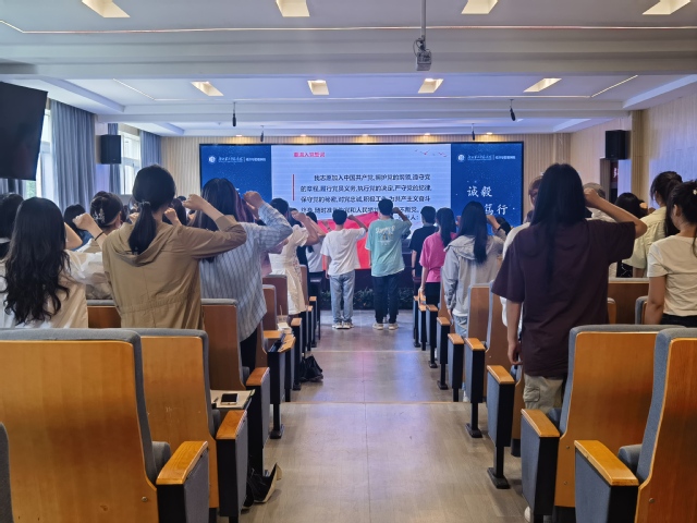 活动伊始,全体党员共同颂唱国歌。随后,举行新发展党员入党仪式,由范凯领誓,全体党员重温入党誓词,并学习《中国共产党章程》,深刻到认识党员的权利和义务所在,理解组织的纪律性和重要性。