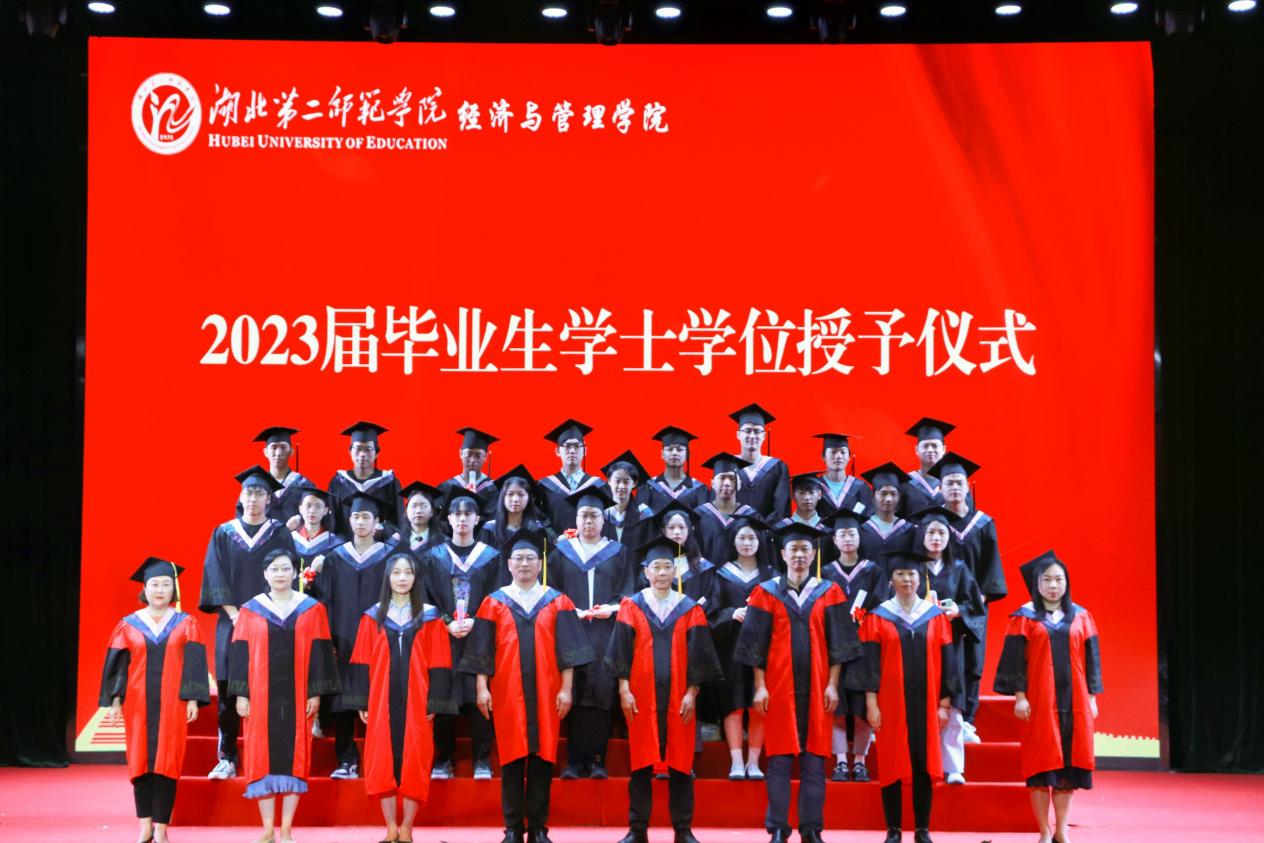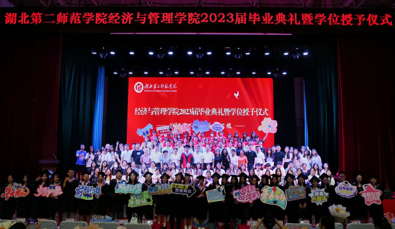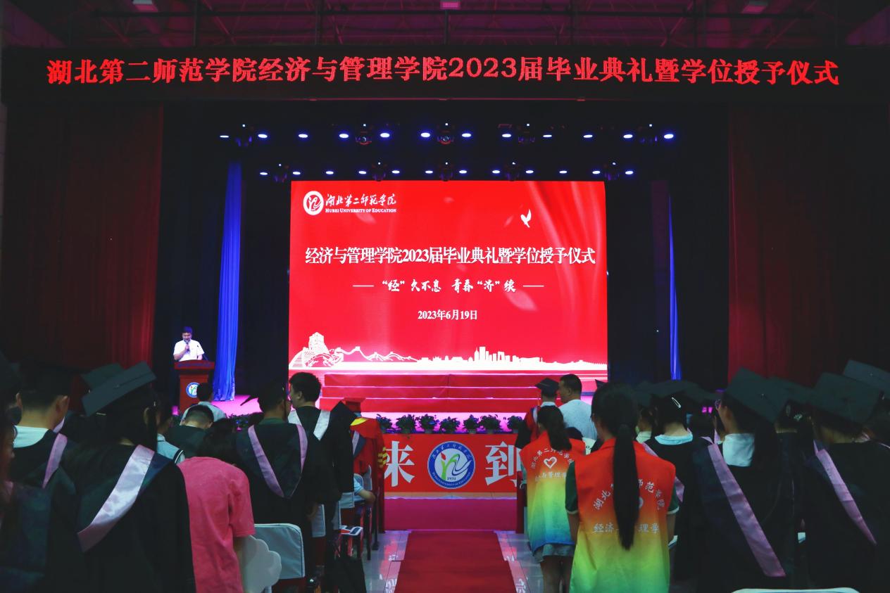 本网讯(通讯员 席中刚 李燠焓)6月19日上午,经济与管理学院(以下简称经管学院)“经”久不息,青春“济”续2023届毕业典礼暨学位授予仪式在大礼堂隆重举行,校长郑军出席仪式。“师友·学友行动”联系单位财务处处长王诗龙、审计处处长蔡彬、财务处副处长王勇、宋金江,审计处副处长刘杰,经管学院党委书记刘元锋、院长陈池波、副院长陈艳明、常静、蔡璐,院长助理刘爱君、财务处王敏、张勇老师以及各系办主任,教师代表,毕业班辅导员和经管学院2023届全体毕业生参加典礼。典礼由经管学院党委副书记李京主持。