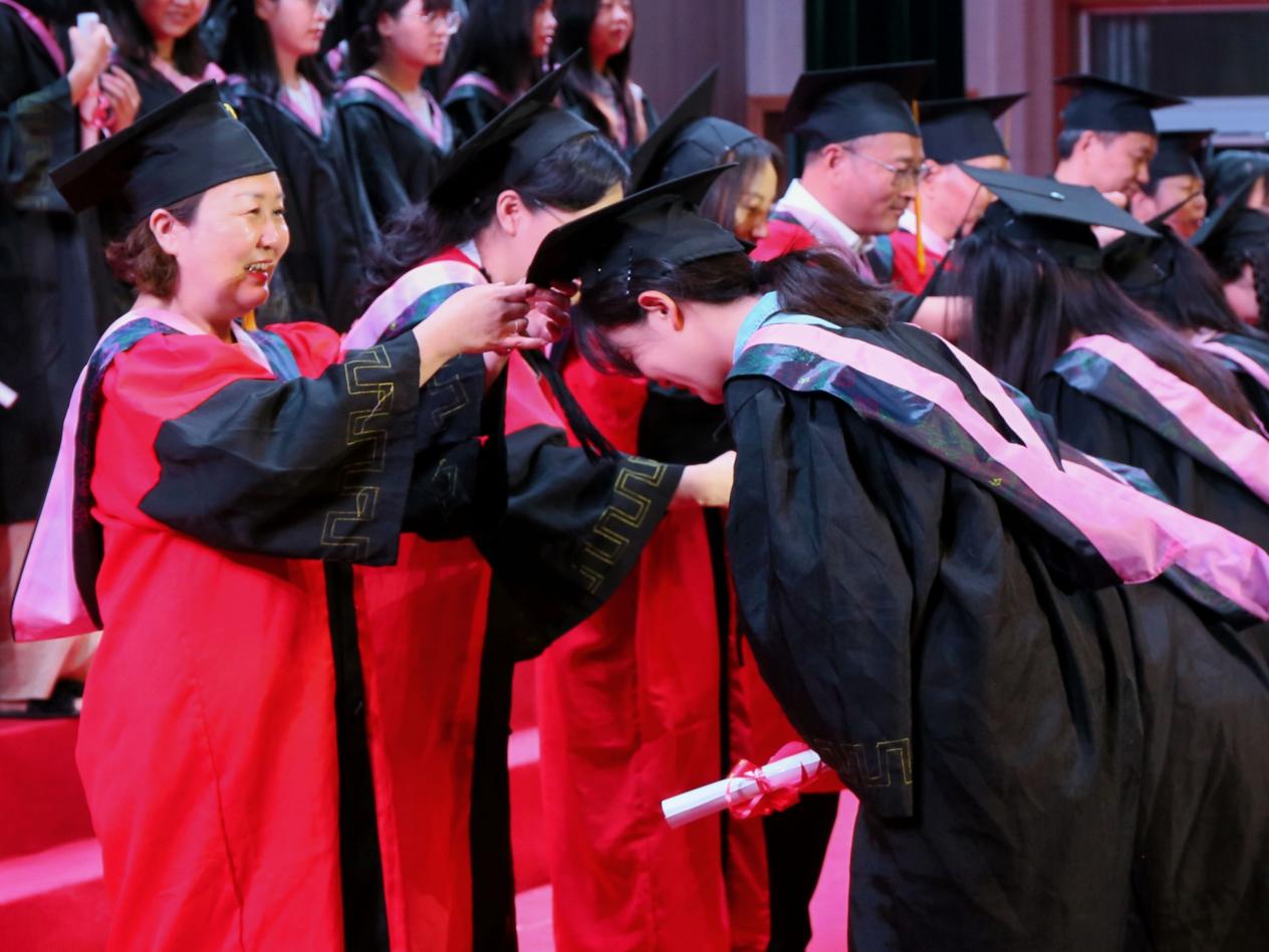 经管学院各系主任分别宣读毕业生学位授予名单,导师团为毕业生拨穗。