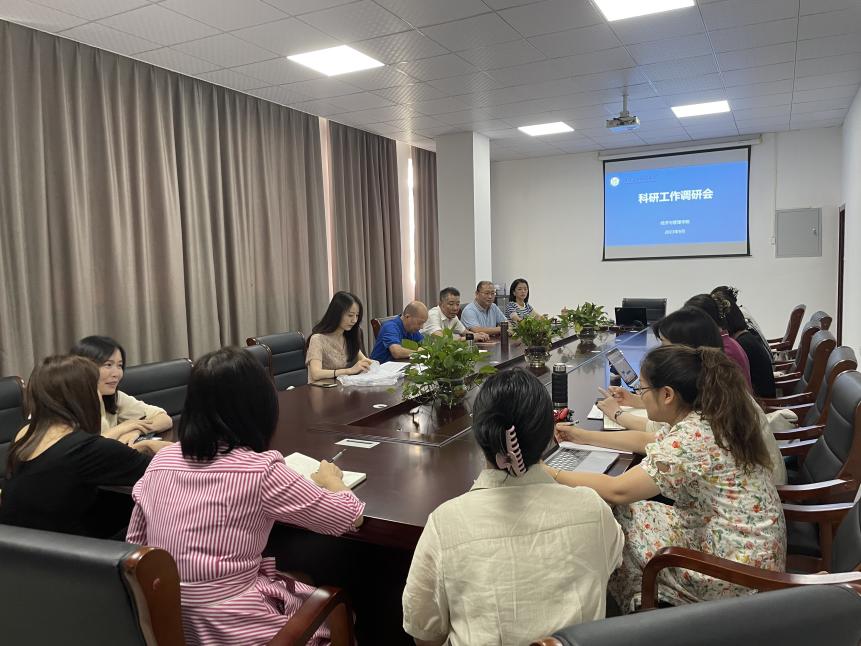 陈池波院长从立足四大发展理念、落实四大建设任务、推进四名培育工程概述了学院基本情况,从平台建设、团队建设、项目申报、论文发表、专著出版等方面介绍了学院科研工作。副院长常静通报了学院科研工作成果,希望学校科研处为学院搭建更多平台,提供更多支持,共同推动学院科研工作高质量发展。与会老师充分交流了科研工作中的成绩与体会,问题与困惑。科研处贺青副处长鼓励老师们要树立信心,组建团队,凝炼方向,夯实基础。