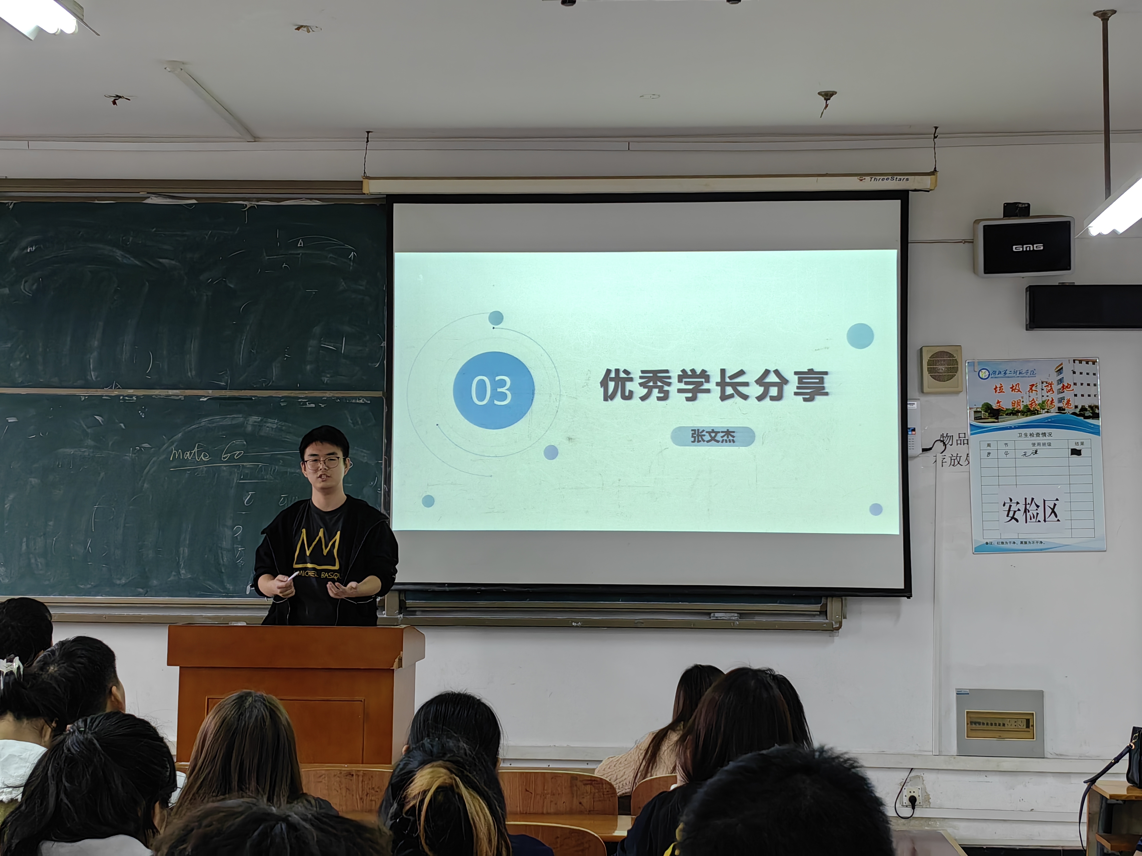 在此之后,优秀学长张文杰作为老生代表发言。通过回顾其大学时光,向同学们分享了四点经验:一是多学习理论知识,多思考;二是多阅读,拓展知识面;三是珍惜时间,做好规划,把握好机会;四是掌握好相关专业技能,为未来工作做好准备。此外他还提醒同学们在学习之余,也要不断提升自己的人际交往能力,学会有效沟通。