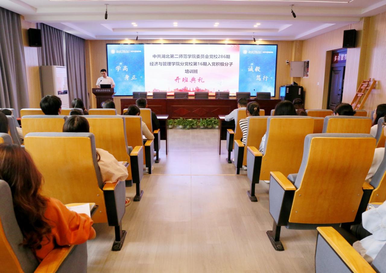 本讯网通讯员  程诗 方红1019日下午中共英国威廉公司委员会党校286williamhill英国分党校第16期入党积极分子培训班开班典礼在二号教学楼三楼多功能报告厅举行。williamhill英国党委副书记李京、组织员李晓华、各学生党支部委员及培训班全体学员参加活动。典礼由学生第二党支部书记席中刚主持。