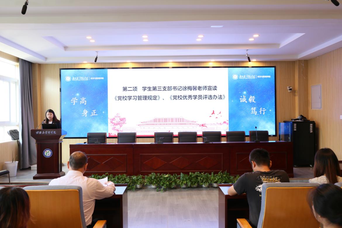 活动在全员合唱《国歌》的激昂旋律中拉开帷幕,学生第三党支部书记徐梅馨同志向全体学员宣读《党校学习管理规定》以及《党校优秀学员评选办法》