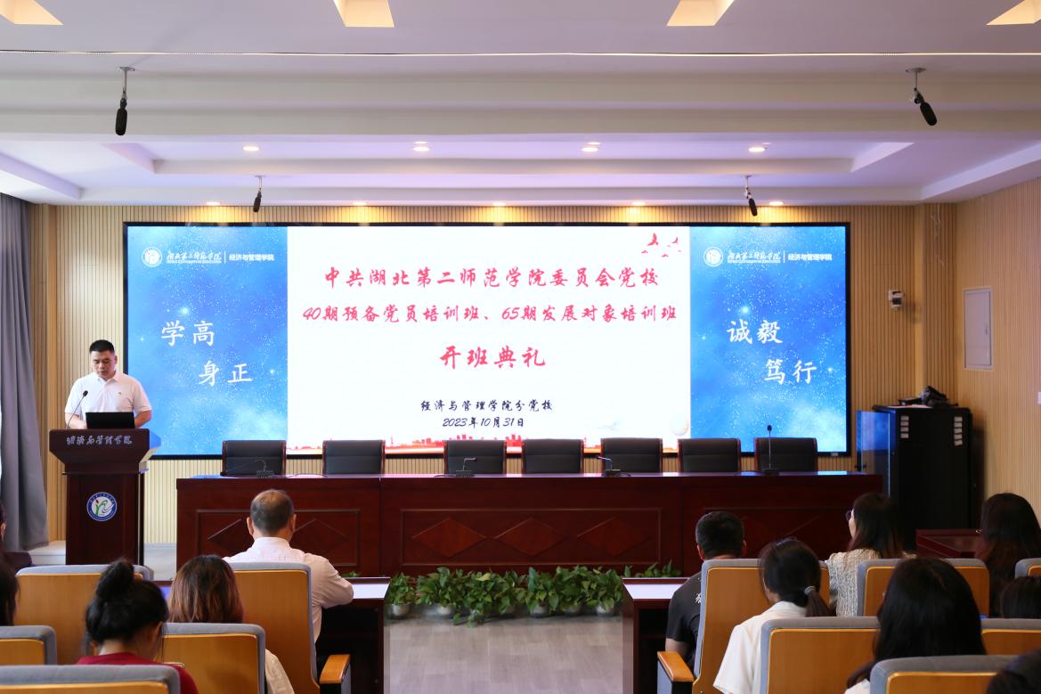 本网讯(通讯员 吴钰珊 刘念念 陈慧珍)10月31日中午,williamhill英国分党校在二号教学楼三楼多功能报告厅举行中共英国威廉公司委员会党校第40期预备党员培训班、第65期发展对象培训班开班典礼。经济与管理学院党委书记刘元锋、学院组织员李晓华以及学生党支部全体支委出席了开班仪式,培训班全体学员参加。仪式由学生第二党支部书记席中刚主持。