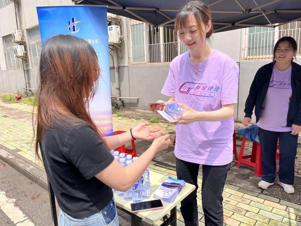 在宣传现场,工作人员现场发放精美的宣传册,用图文并茂的方式,向同学们耐心细致地介绍新城快线运营线路站点、乘车方式以及节假日运营保障措施等方面的信息。同时,与同学们开展互动交流,解惑答疑,发放纪念卡和矿泉水,吸引了众多同学的详细咨询和积极关注。