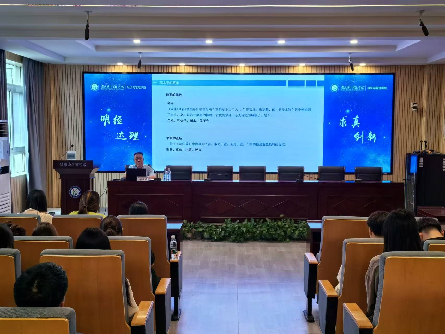 对草木染的工艺进行详细介绍后,柴教授还从美学角度深入剖析了它所蕴含的多重美感。他强调,草木染不仅展现了自然之美,更体现了艺术之美、工艺之美以及社会价值美。整个讲座过程中,柴教授的语言生动而富有感染力,师生们对这项传统工艺有了更加深入的了解和认识,感受到了它所蕴含的深厚文化内涵和独特魅力。