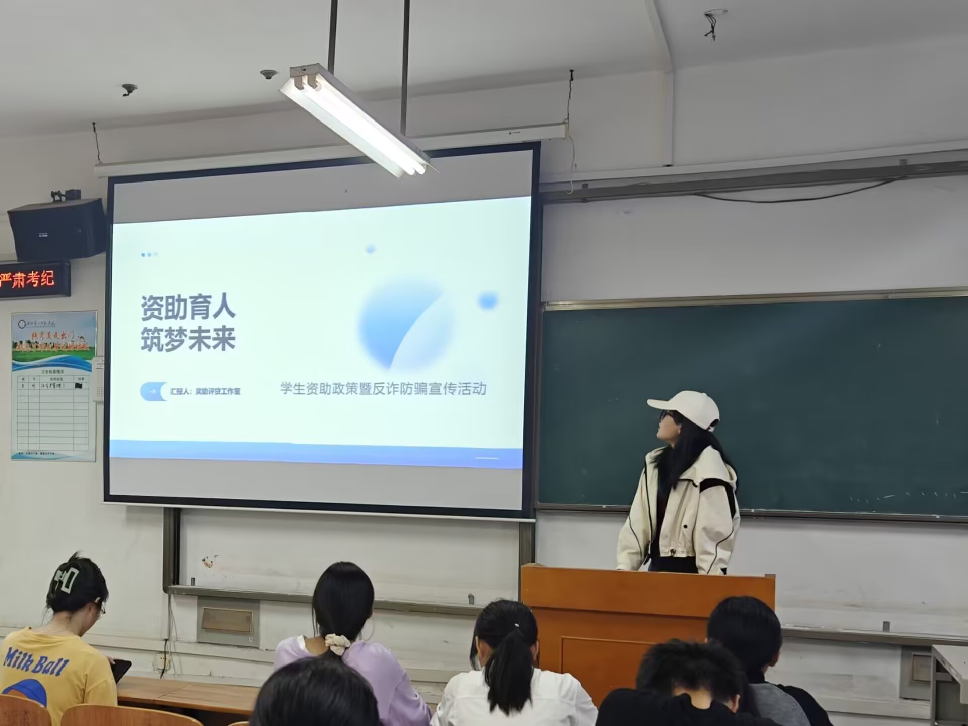 会上,占雨茜围绕国家及学校的各项资助政策,详细介绍了国家资助体系,包括家庭经济困难学生认定、国家奖学金以及国家励志奖学金的评判标准、申请条件、审核流程和应交材料等,向在场同学传达国家和学校学生资助管理中心的各项政策要求,使他们深入了解奖学金、助学金、助学贷款、勤工俭学临时困难补助、绿色通道生活补助和路费补贴等各项资助项目。